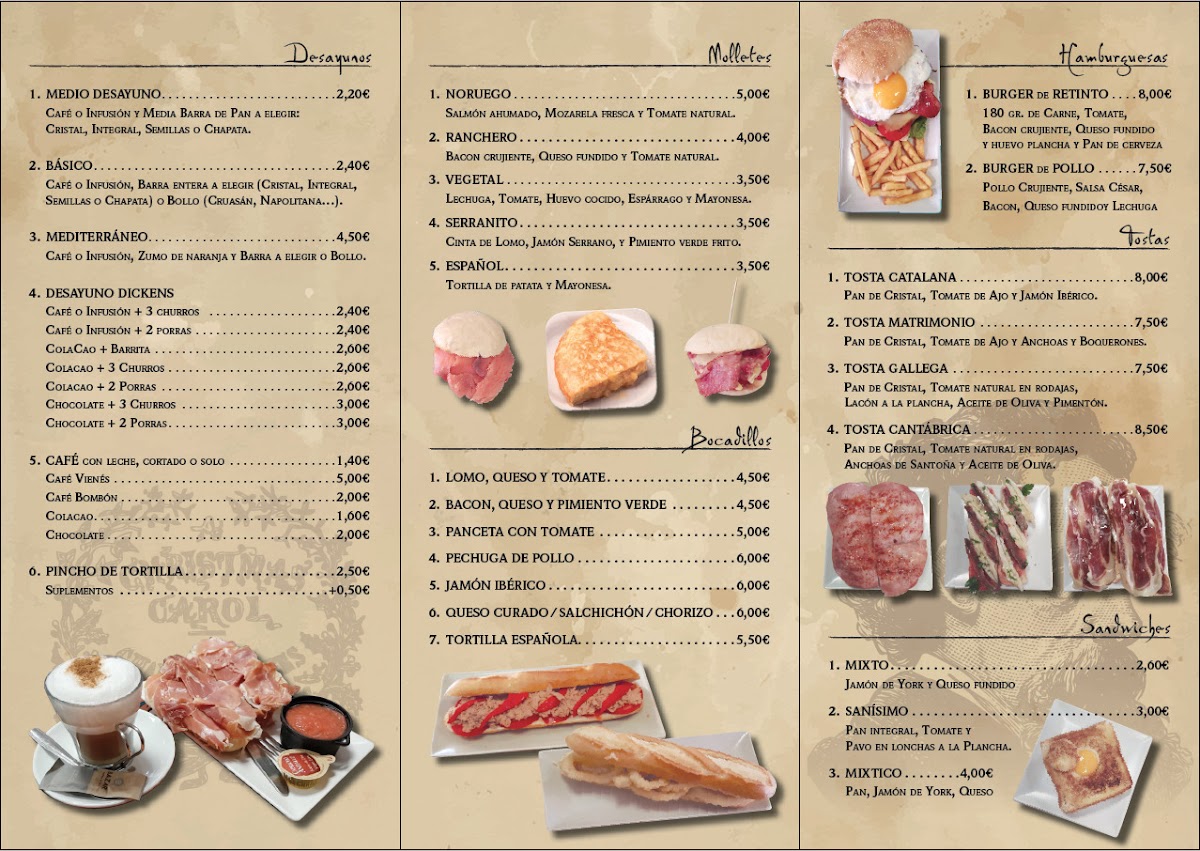 The menu at Churreria Dickens Cafe offers a variety of traditional Spanish snacks and beverages, focusing primarily on churros, porras, and typical cafe drinks. It is structured into several categories to suit different dining occasions such as breakfast, coffee breaks, or light meals.